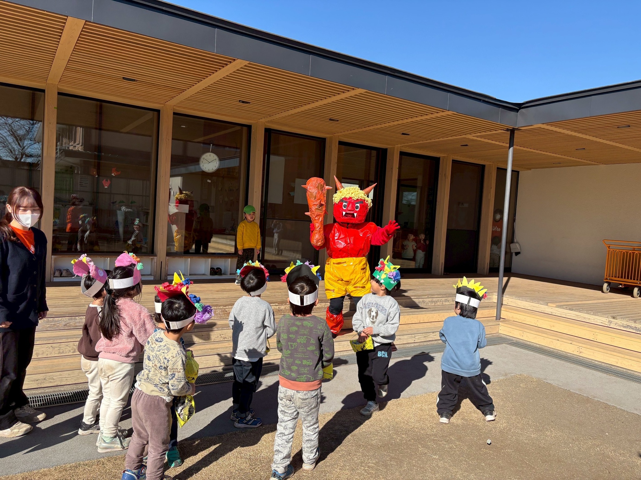 一覧へ戻る 節分を楽しみました2026-02-03 本日は節分!保育園に赤鬼さんが来ました!子ども達は大喜びで新聞紙で作った豆を力いっぱい鬼に投げていました。「おにはーそと!」という元気な声が響きわたり、楽しい一日を過ごしました